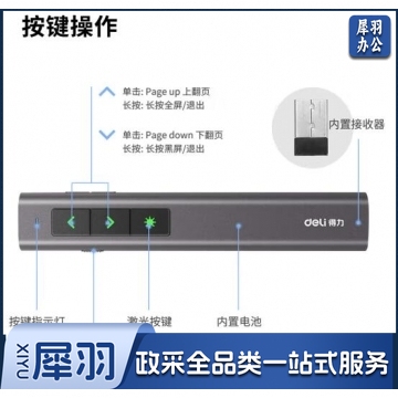 得力(deli)激光笔 高端系列绿光 可充电音量调节教鞭 ppt幻灯片翻页笔 演讲激光无线演示笔翻页器2809 IT.1799
