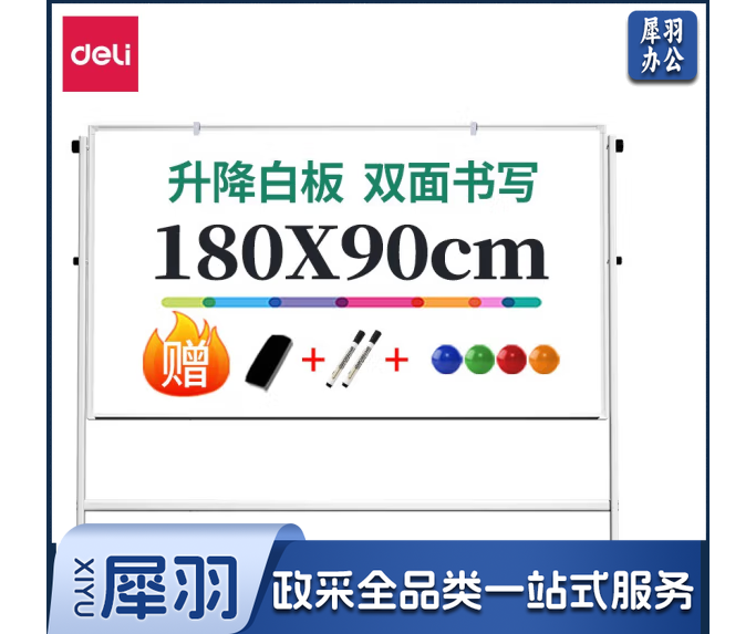 得力(deli)90*180cm白板支架式 移动写字板双面办公会议培训黑板 33624/标准款可升降双面白板