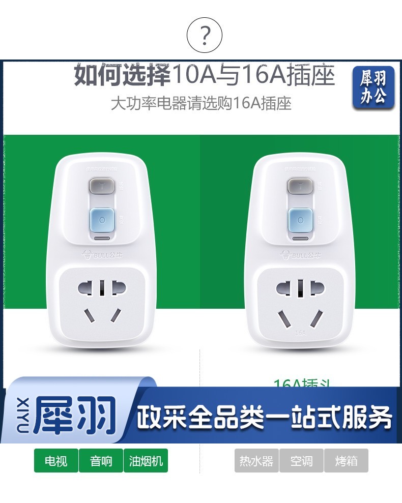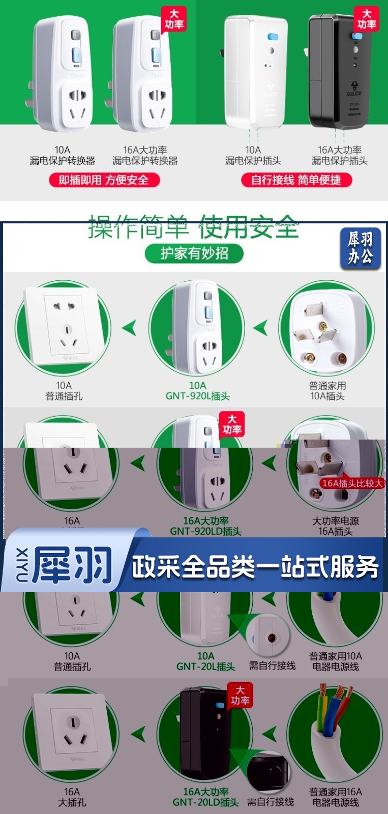 公牛漏电保护插头防漏电插排防触电漏保带开关10A/16A热水器空调大功率接线浴室卫生间漏电保护器插座 GN-T-20L 10A自接线普通款
