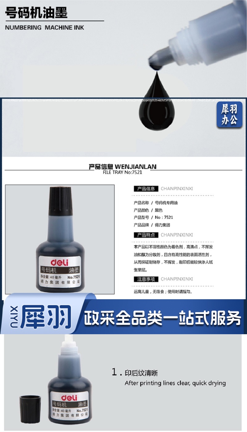 得力(deli) 7521 打码机油墨 黑色新老包装随机发
