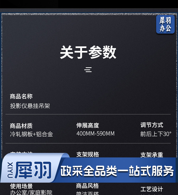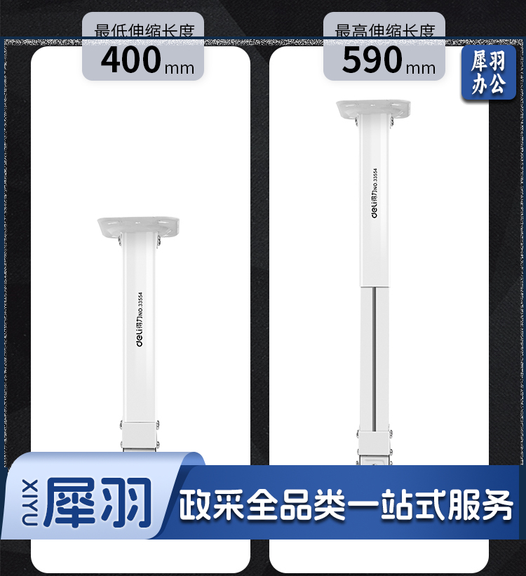 得力(deli)投影仪挂架投影仪支架吸顶投影机吊架支架 12个/箱 长度40-59cm33554