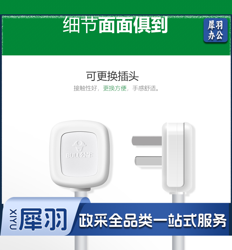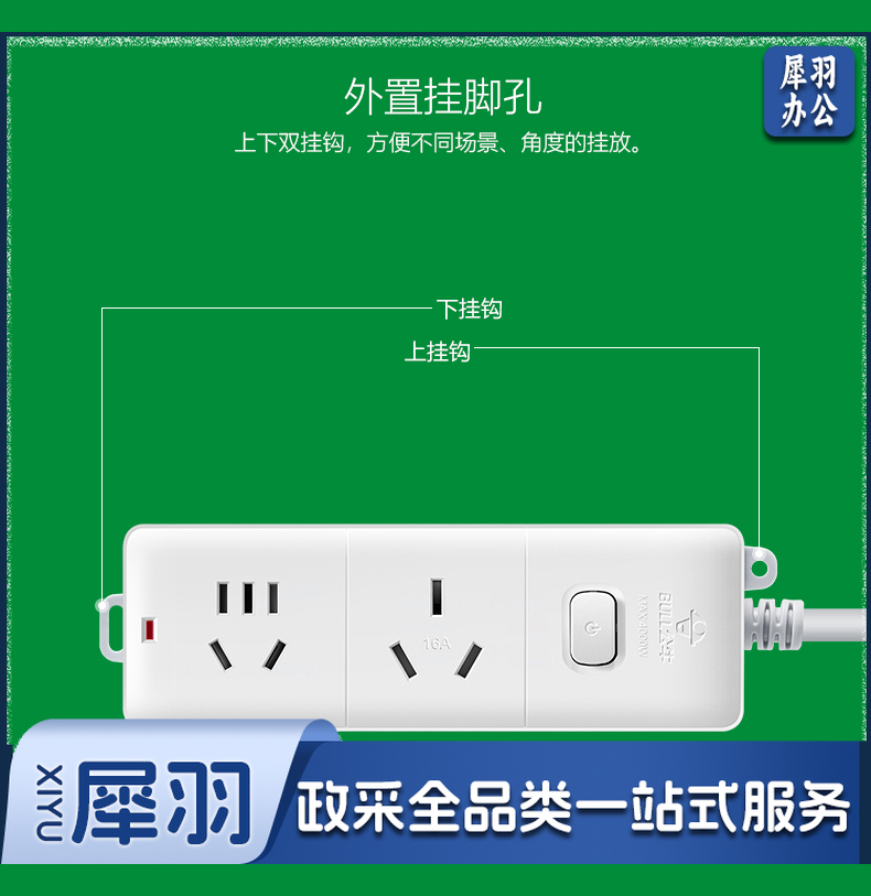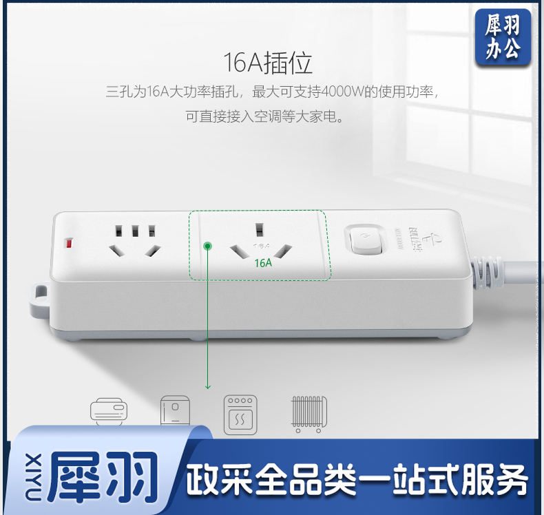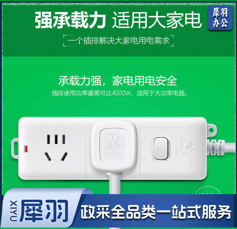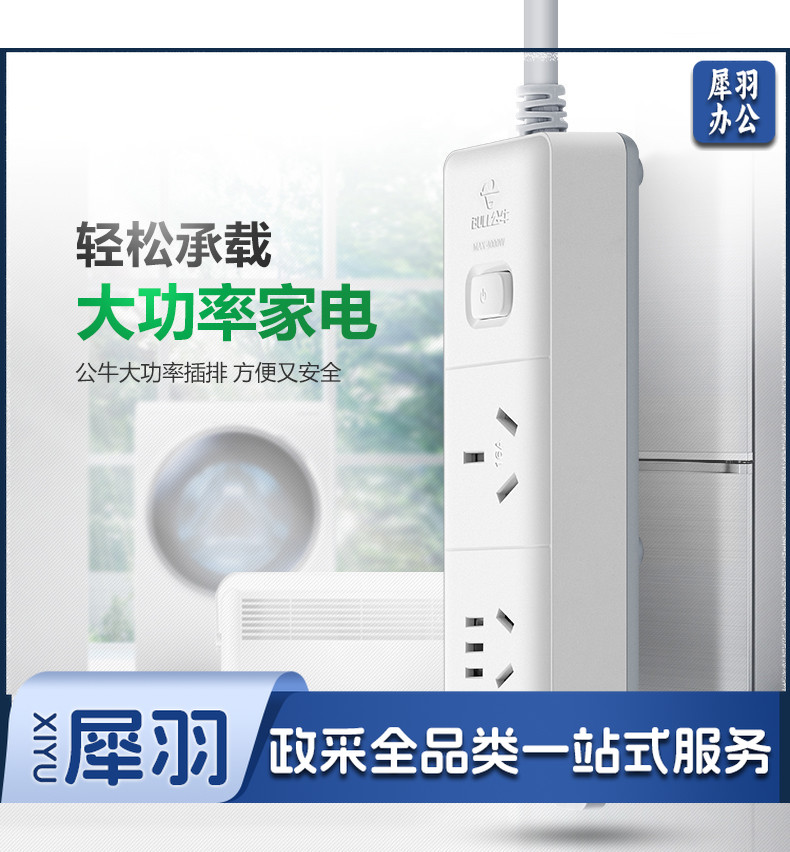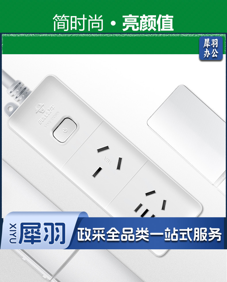 公牛(BULL)GN-606D 拖线板接线板插排 大功率空调 16A大插头 1.8米