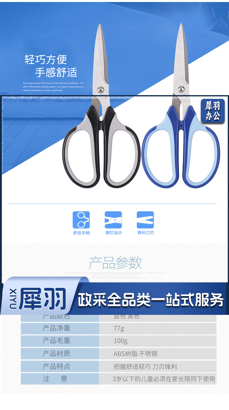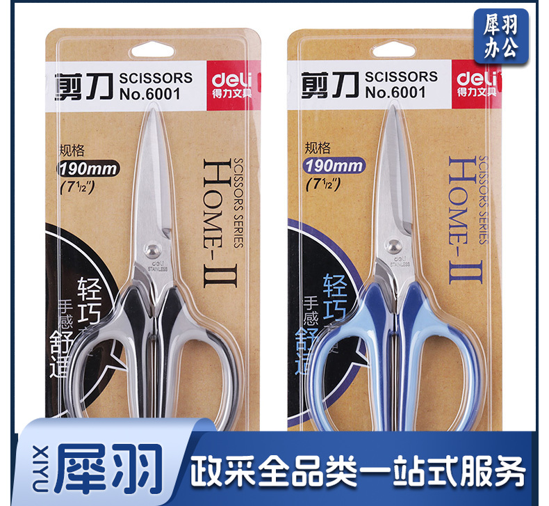 得力 6001 剪刀 全长190mm 办公剪刀 (混)