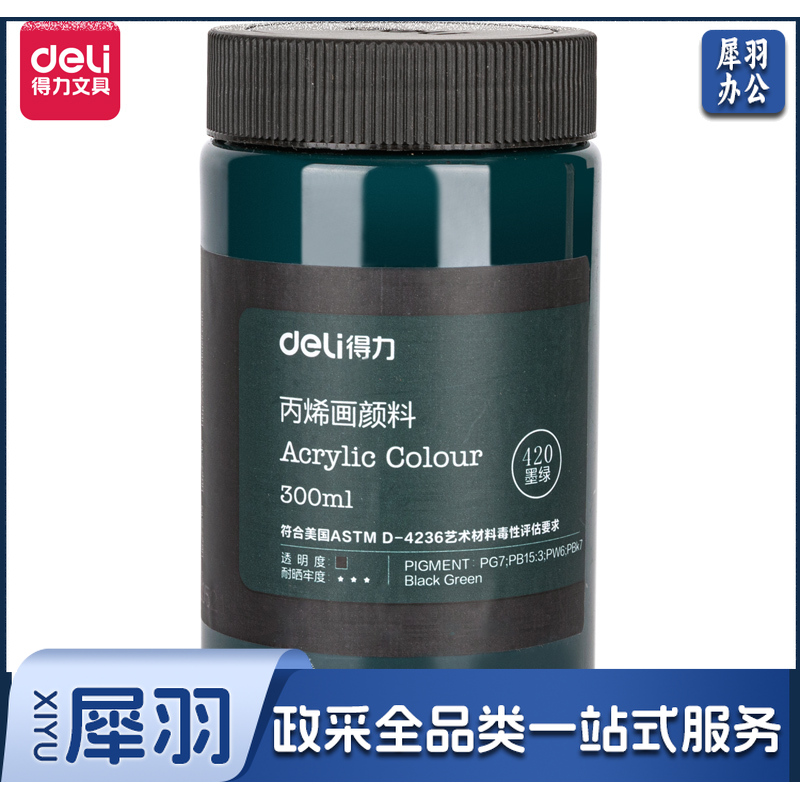 得力(deli)丙烯颜料300ml大容量 73875墨绿