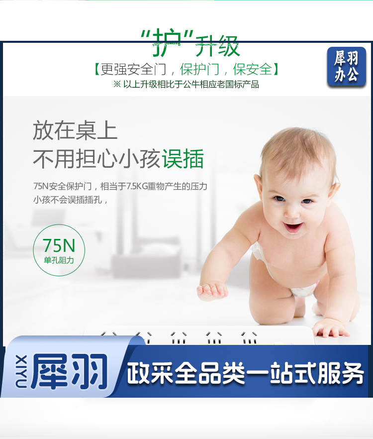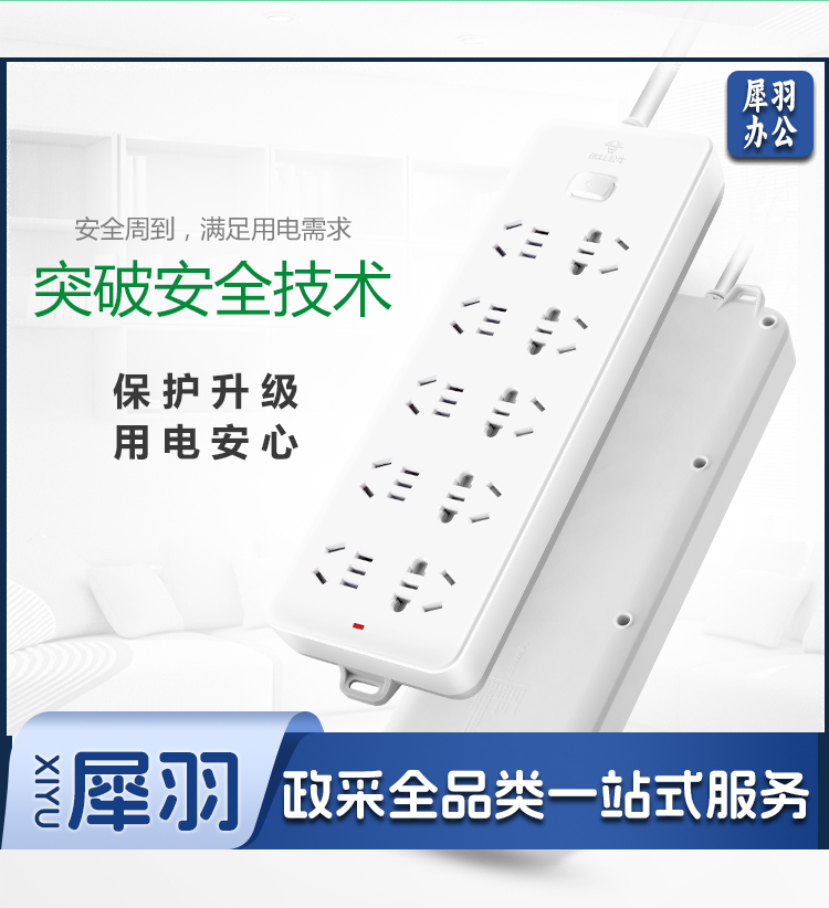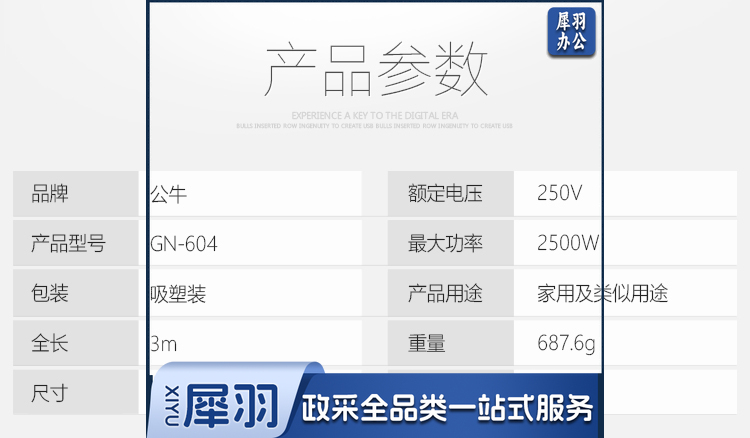 公牛(BULL) 超功率过载保护 新国标/插线板/插排/排插/接线板 GN-604 8位总控全长3米