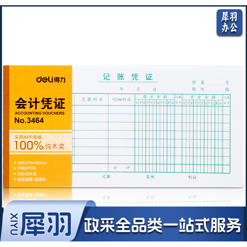 得力(deli)3464记账凭证 35K75张会计凭证(小)(白色)(本)