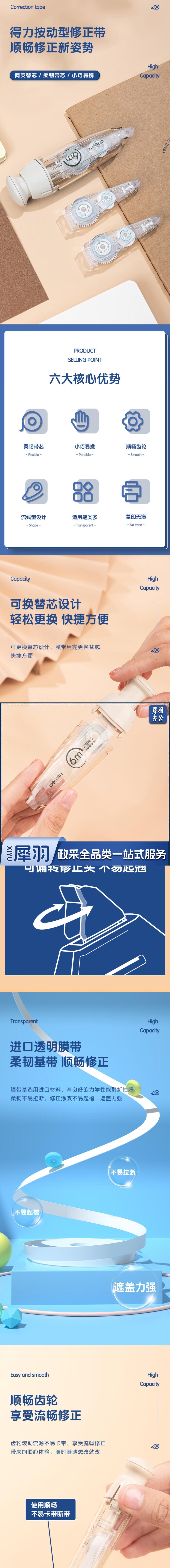 得力 1+2 18m可换芯修正带 米白色VR5-18D