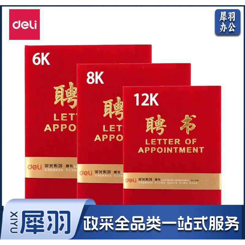 得力(deli)荣誉证书聘书绒面颁奖得奖获奖奖状外壳证书内芯 6K 聘书(215*295mm)