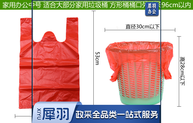垃圾袋 加厚手提背心式垃圾袋 红色 33cm*53cm家用中号桶用清洁袋(制定尺寸20000起订)