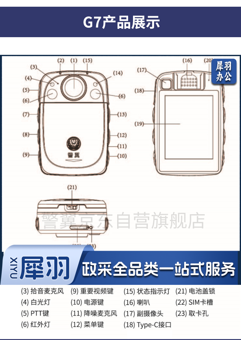 警翼G7执法记录仪智能4G小型执法取证记录仪红外夜视GPS定位 64G版