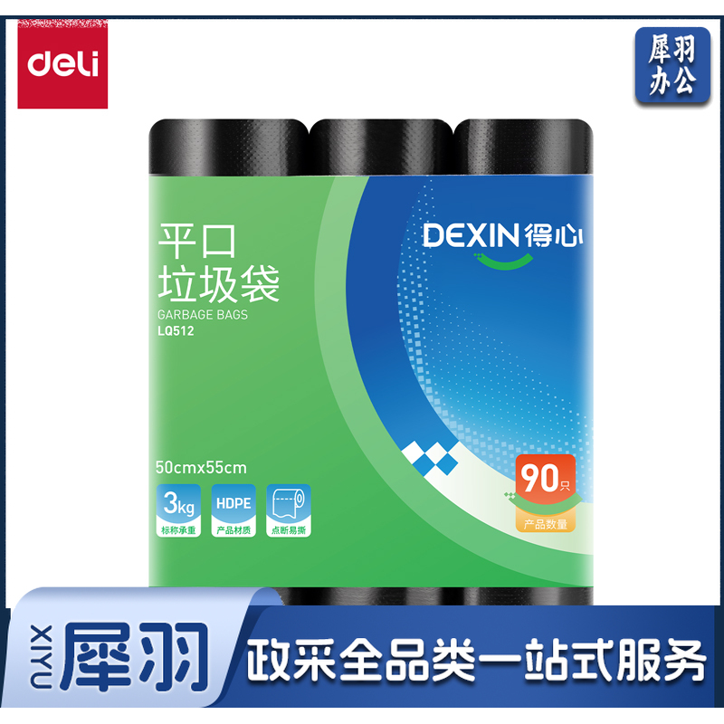 得力 50*55cm垃圾袋 办公经济款垃圾袋3卷(90只) LQ512