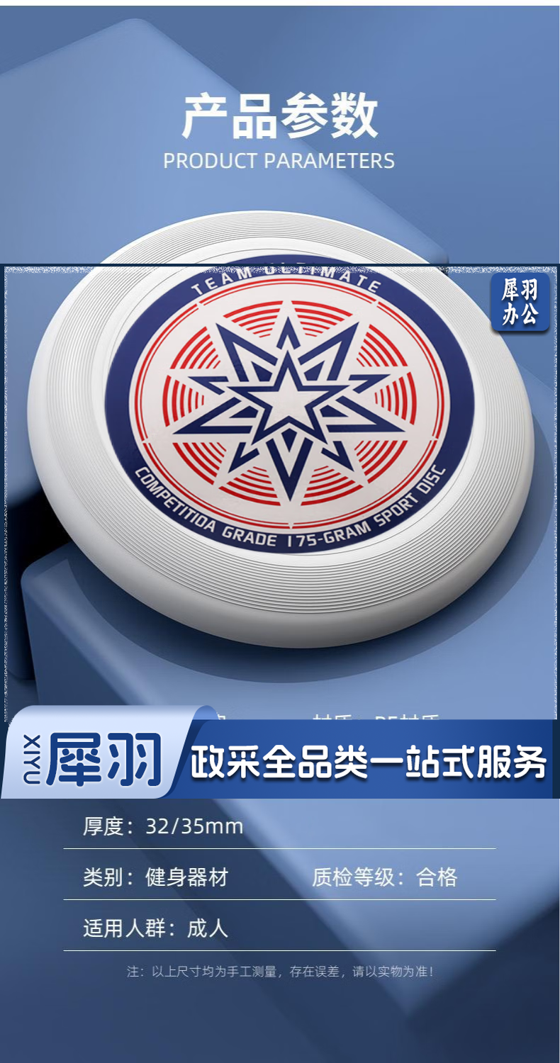 飞盘175g运动户外竞技飞盘 比赛级专用可回旋飞碟盘 蓝色