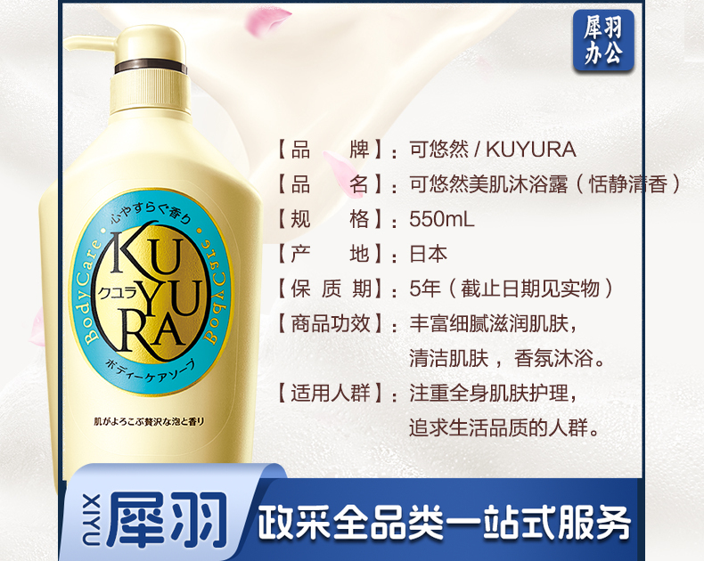 资生堂可悠然(KUYURA)美肌沐浴露4色随机(花漾之恋550ml、碧野悠悠550ml、恬静清香550ml、欣怡幽香550ml)单位:瓶