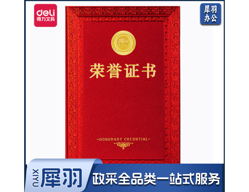 得力24838 荣誉证书 8K255*178mm(红色)(本)
