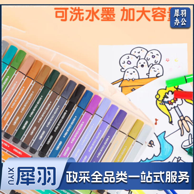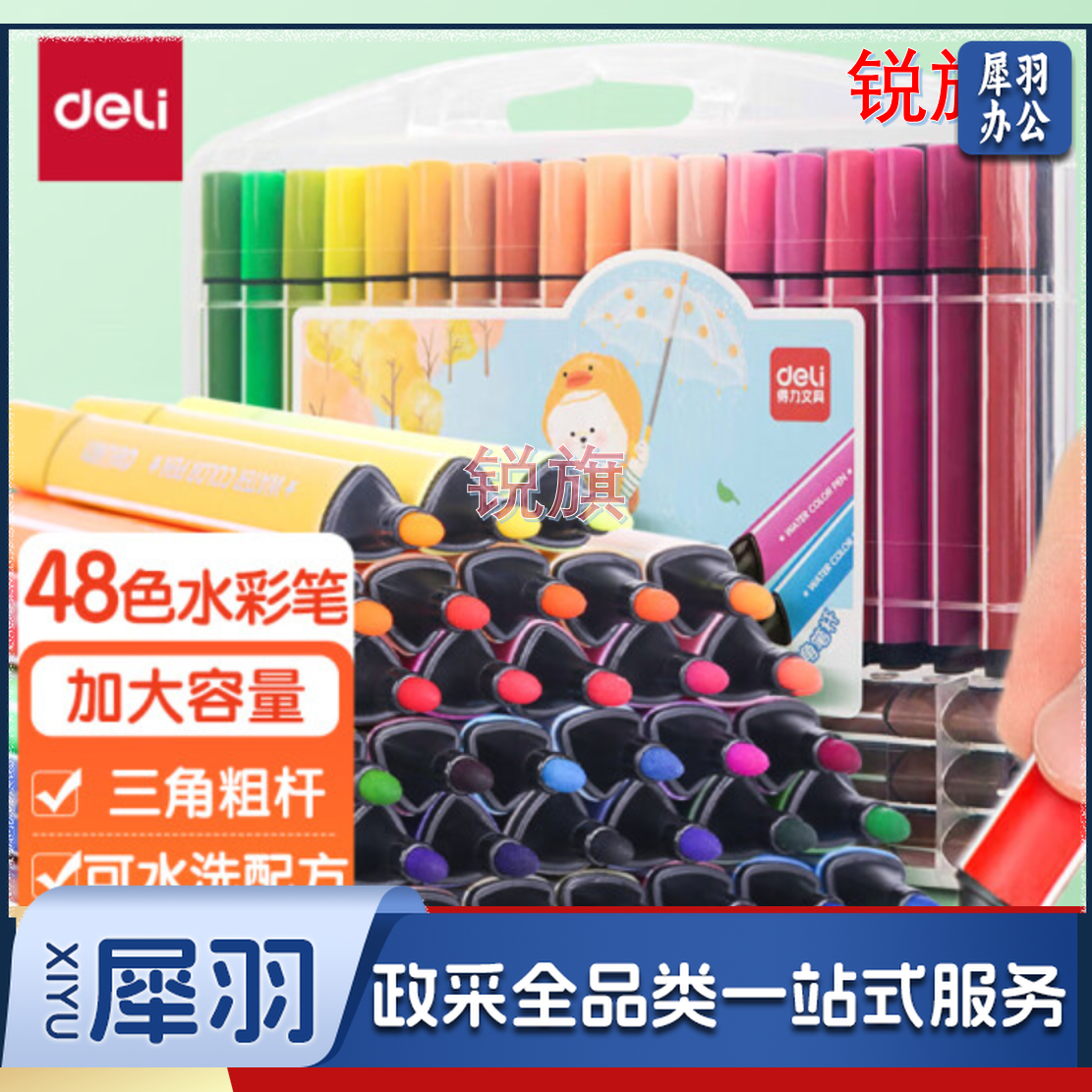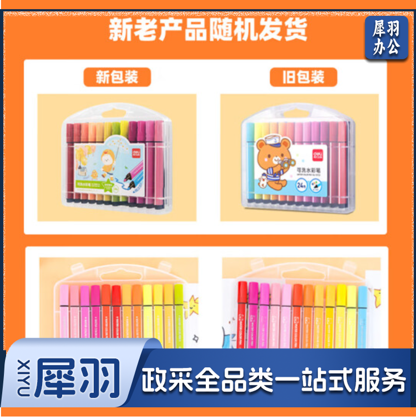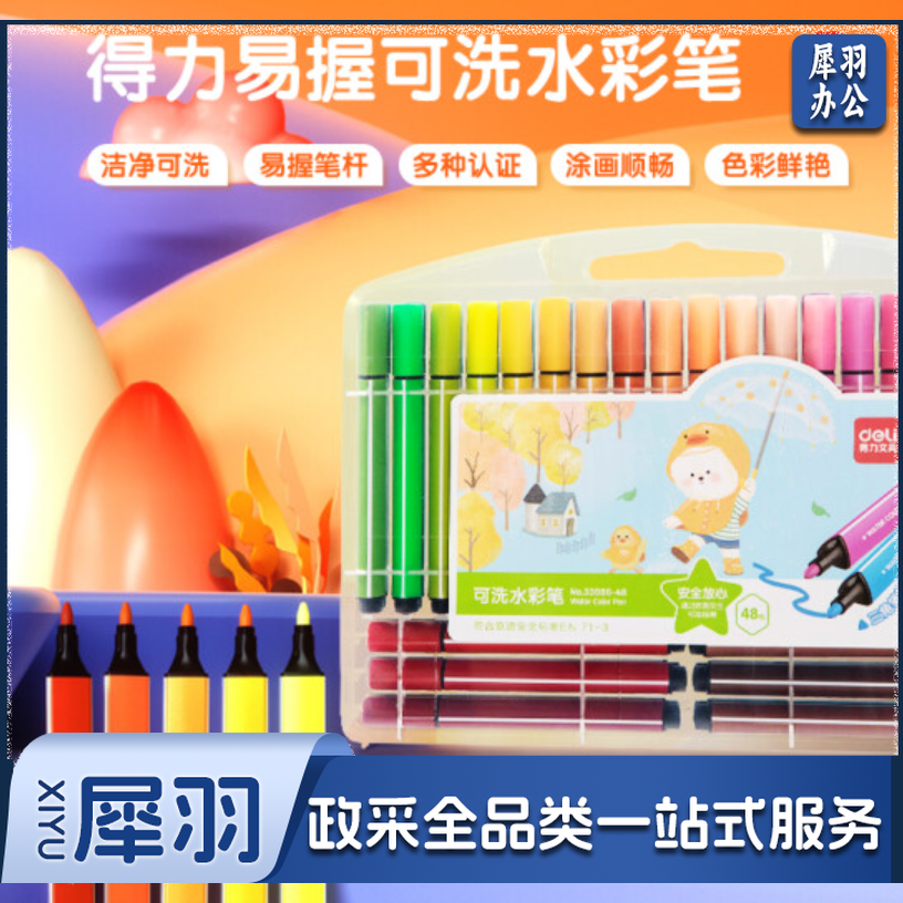 得力(deli)48色可水洗水彩笔 易握粗三角 学生儿童涂色颜色马克笔画笔套装文具美术用品礼物送礼绘画新年礼物