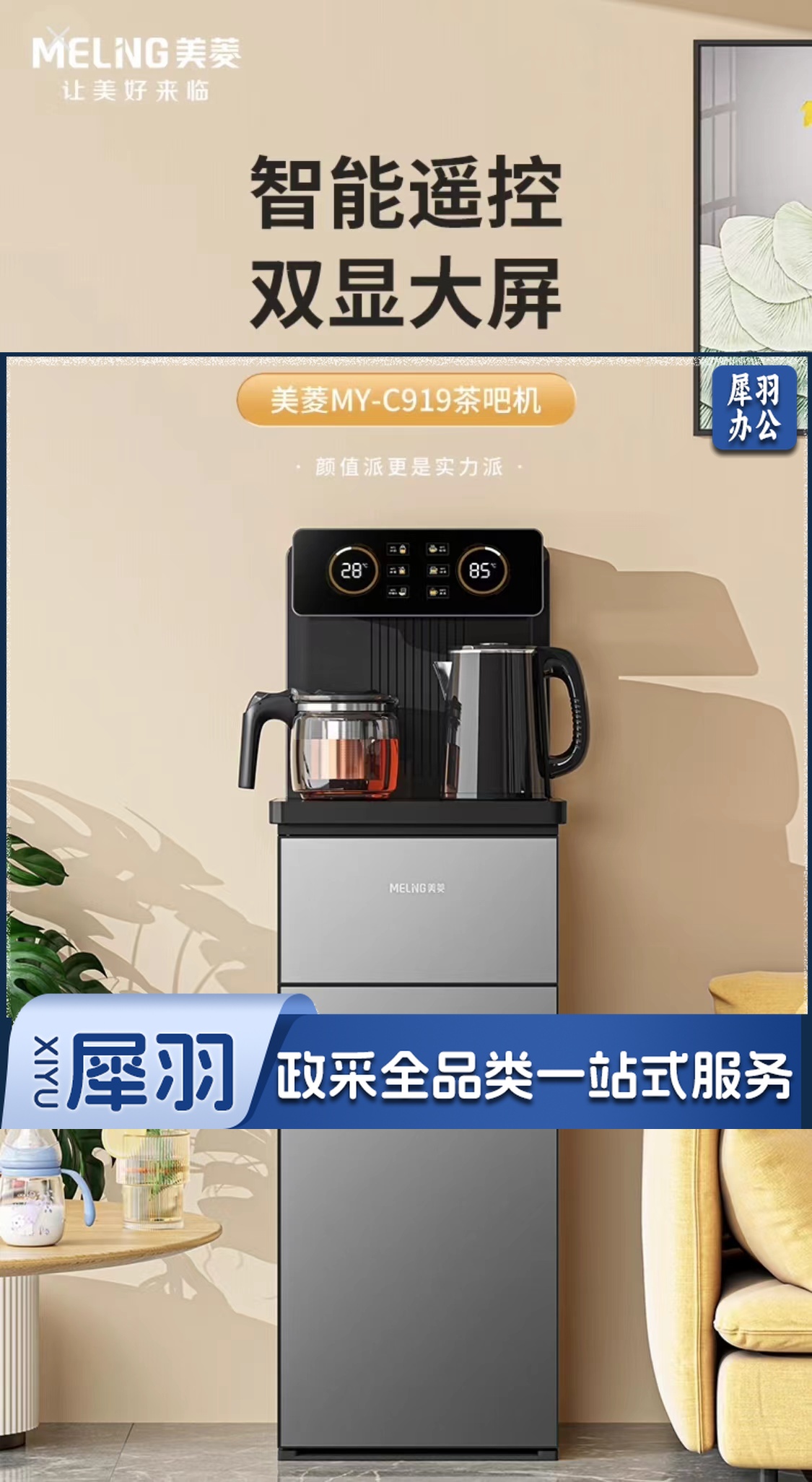 美菱(MeiLing)茶吧机家用饮水机多功能全自动智能遥控立式桶装水下置式饮水器温热型MY - C919