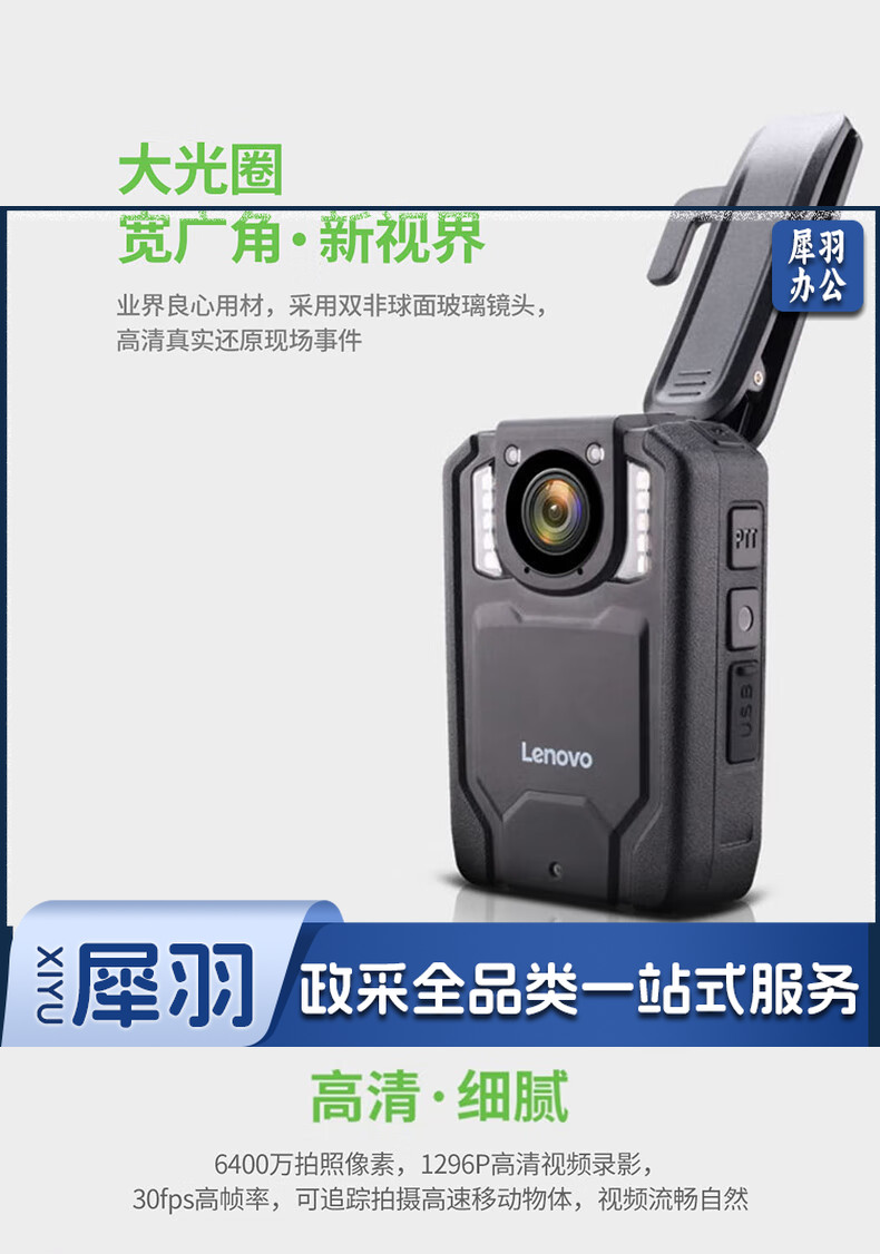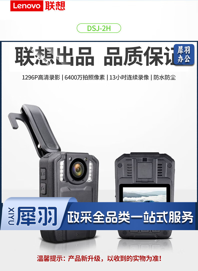联想(Lenovo)执法记录仪 内置32G专业高清红外夜视6400万像素微型随身便携式13小时连续录像DSJ-2H 黑色