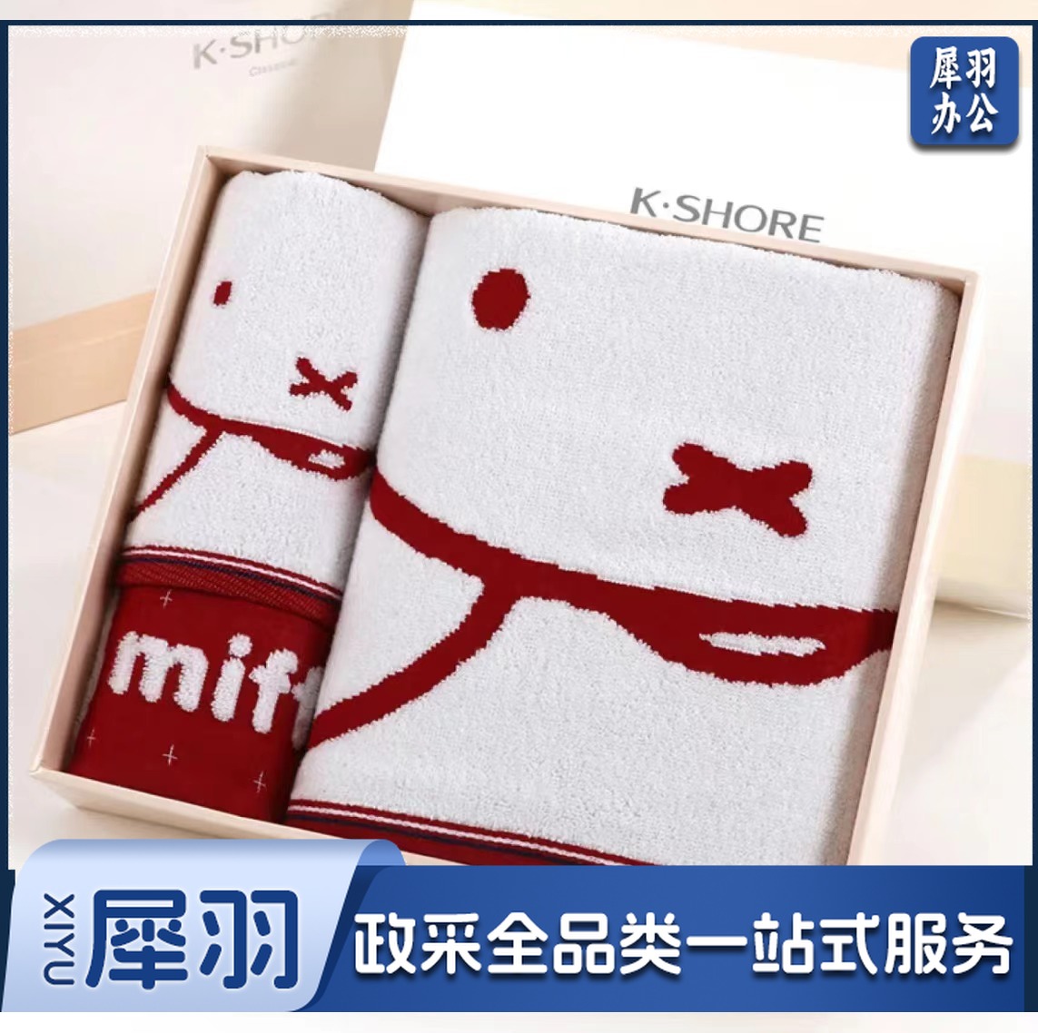 金号 纯棉加厚毛巾+浴巾+方巾 全棉米菲卡通套装 红色礼盒装