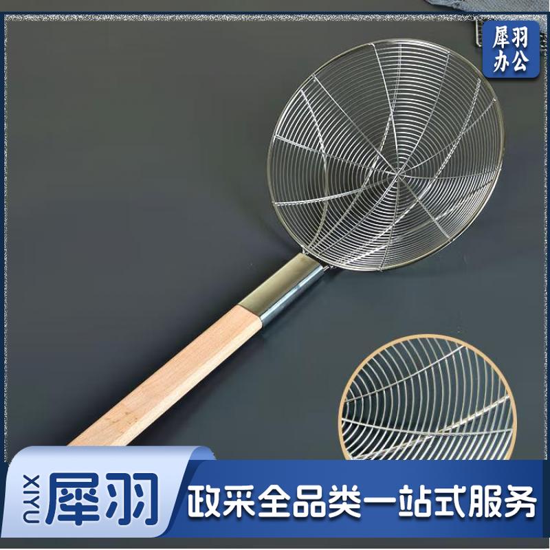 不锈钢大漏勺油炸捞面油鼓笊篱沥水漏油勺焯水捞勺木柄线篱32cm