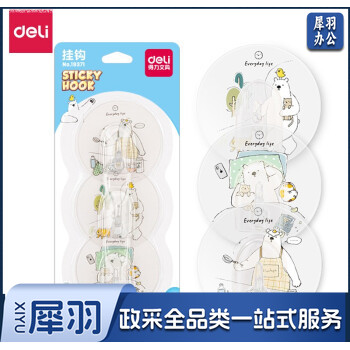 得力(deli)厨房挂钩贴浴室强力粘钩子挂衣钩衣服门后挂钩 19371 3个/卡