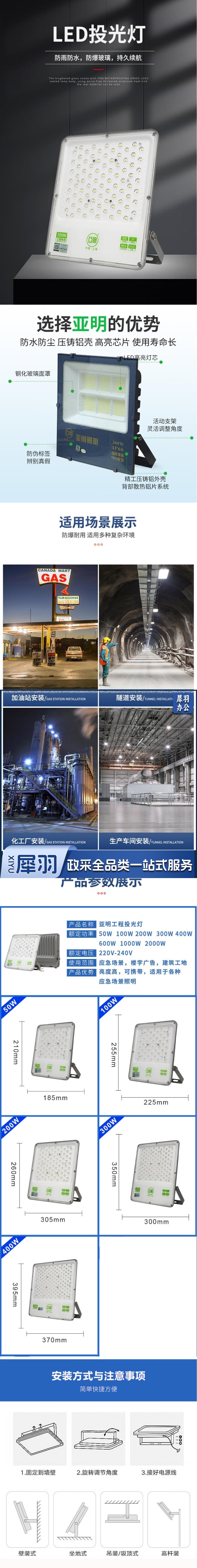 亚明 LED透镜投光灯 泛光灯户外防水射灯高杆灯探照灯 YM-2121系列-300W 足瓦透镜款 白光