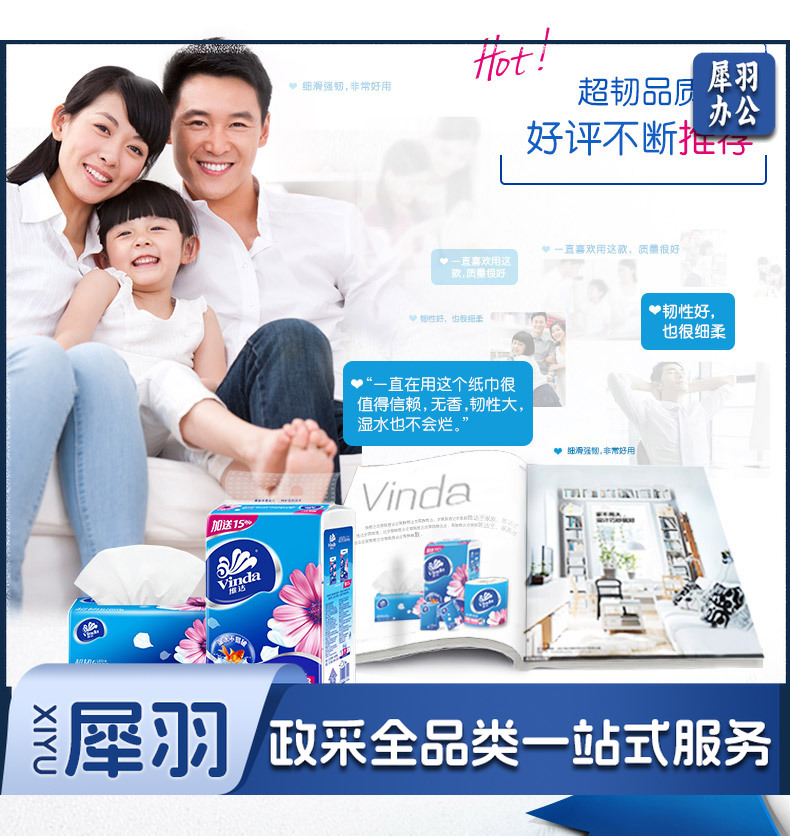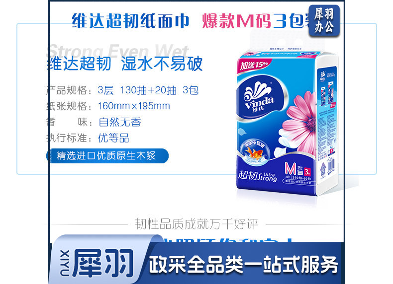 维达 V2182 超韧3层抽取式纸面巾 130+20抽/包 3包/提 48包/箱