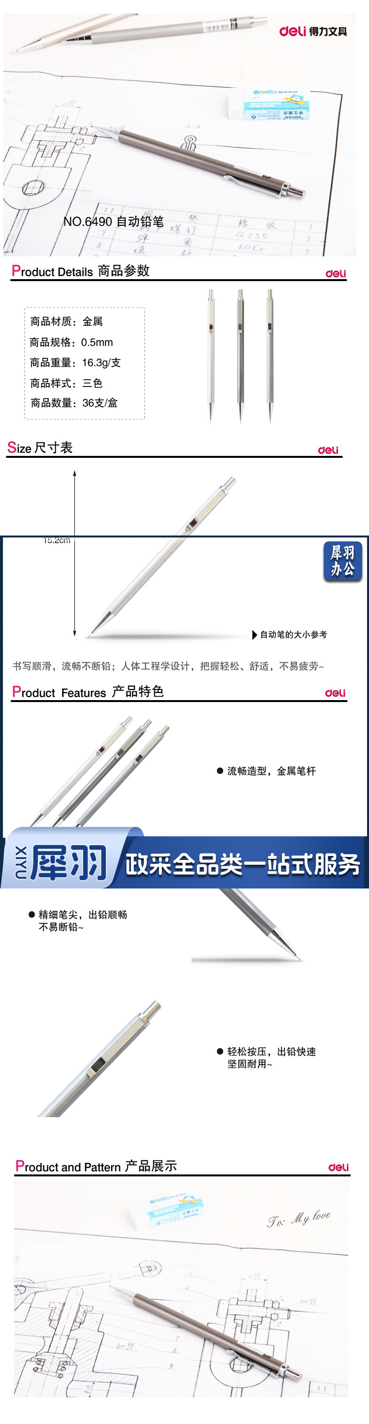 得力 6490 活动铅笔自动铅笔 0.5mm 36支/盒 (单位:支) 混色