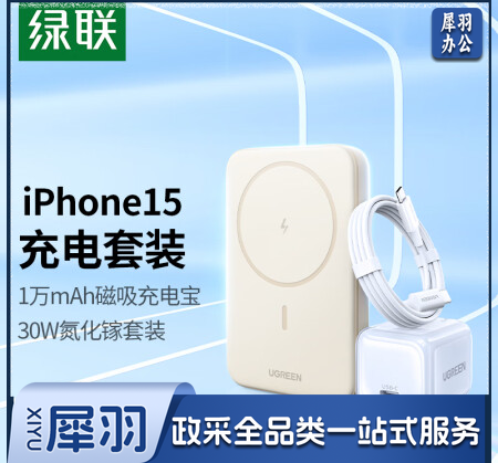 绿联 MagSafe磁吸充电宝套装 内含10000毫安磁吸无线充电宝+30W氮化镓1.5米双C线套装