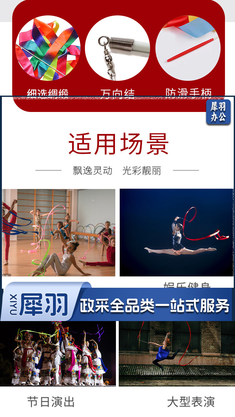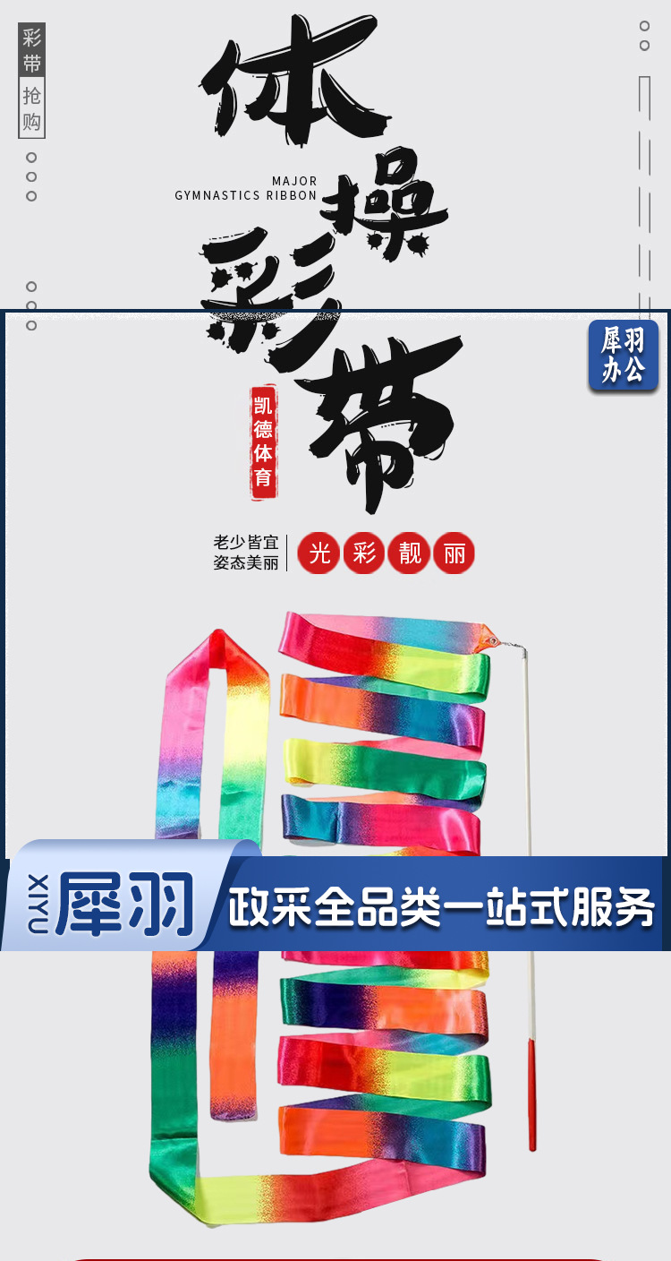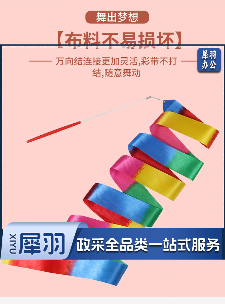 体操彩带 渐变色彩带成人艺术舞蹈演出道具跳舞丝带儿童玩具飘带6米(其他颜色咨询客服)