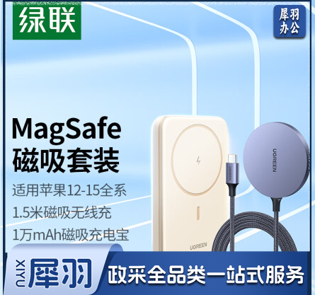 绿联 磁吸无线充电器+10000毫安时磁吸充电宝自带Type-C线 支持MagSafe
