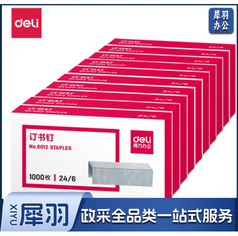得力(deli) 24/6高强度订书钉 12#订书针 1000枚/盒 适配12#订书机 【12# 24/6 / 单盒】