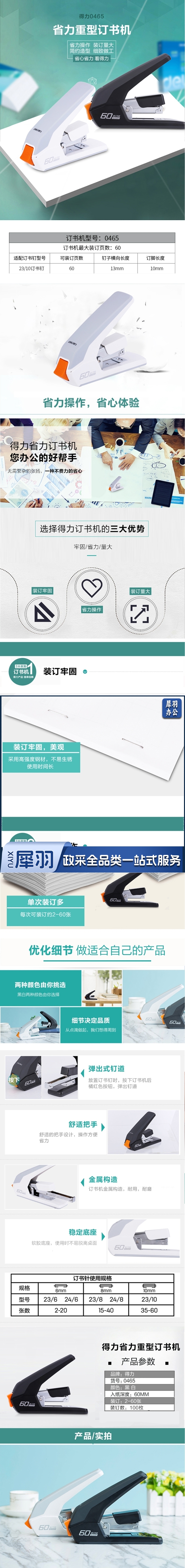 得力0465省力订书机(黑)最大订60页 适配23/6~23/10订书钉