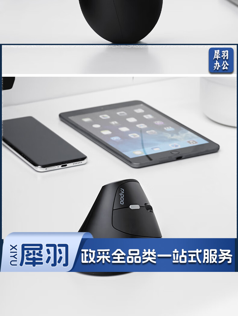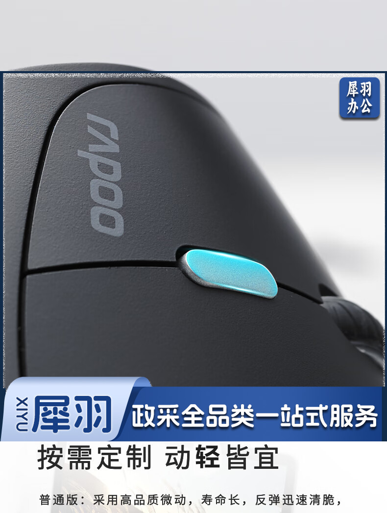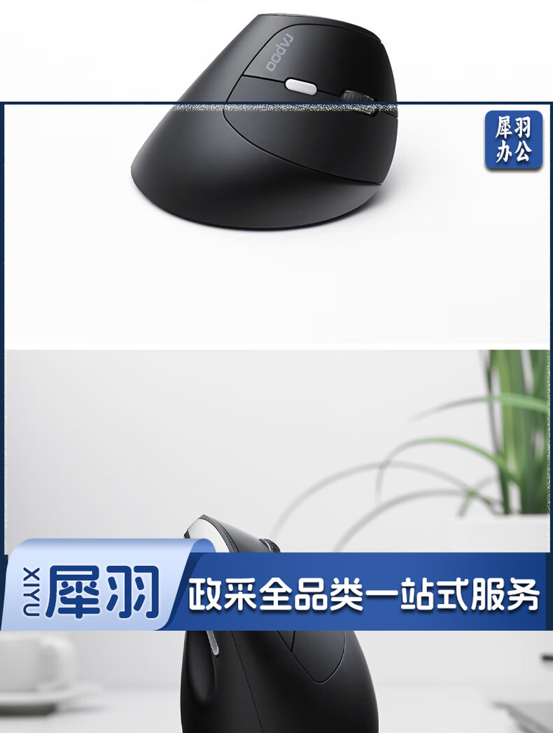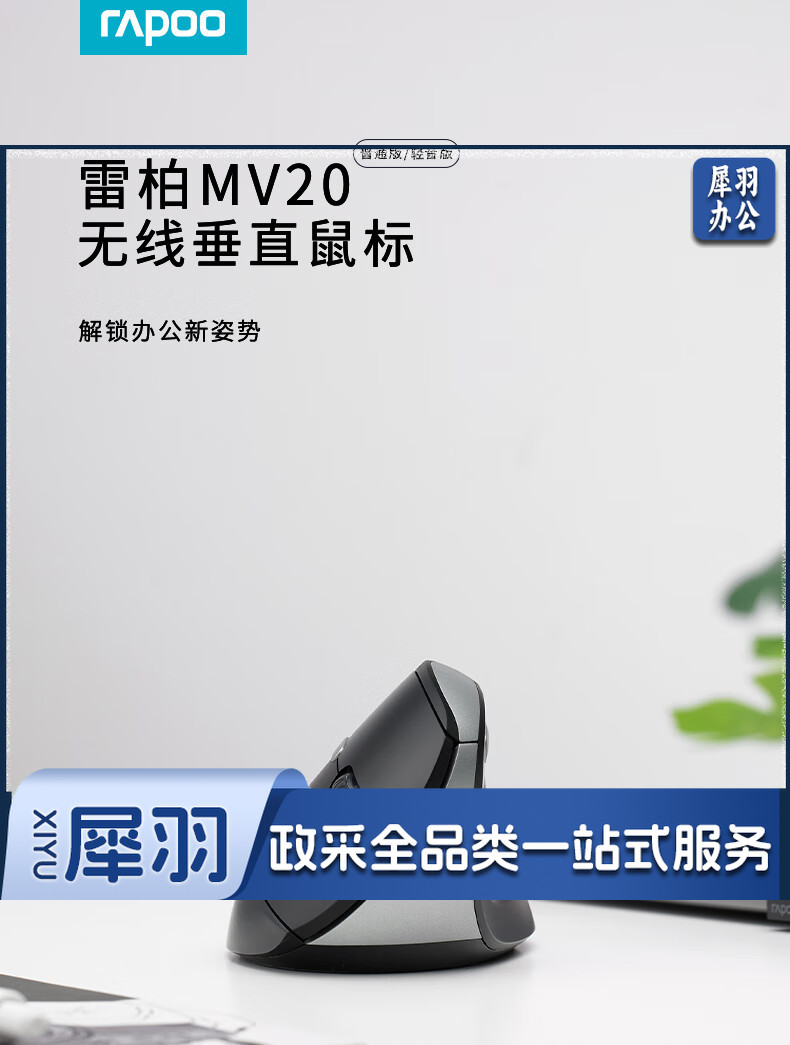 雷柏(Rapoo) MV20轻音版 无线鼠标 垂直鼠标 办公鼠标 轻音鼠标 人体工学 笔记本鼠标 电脑鼠标 黑色