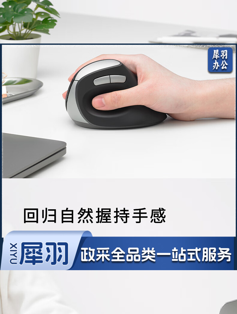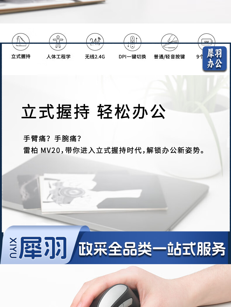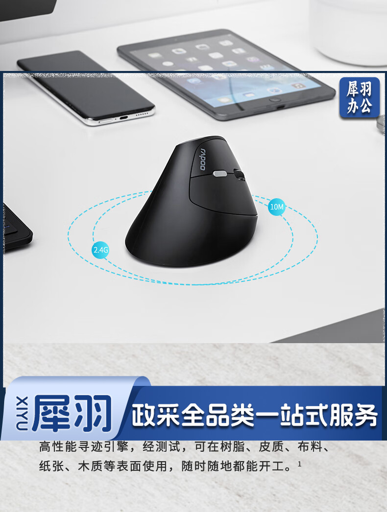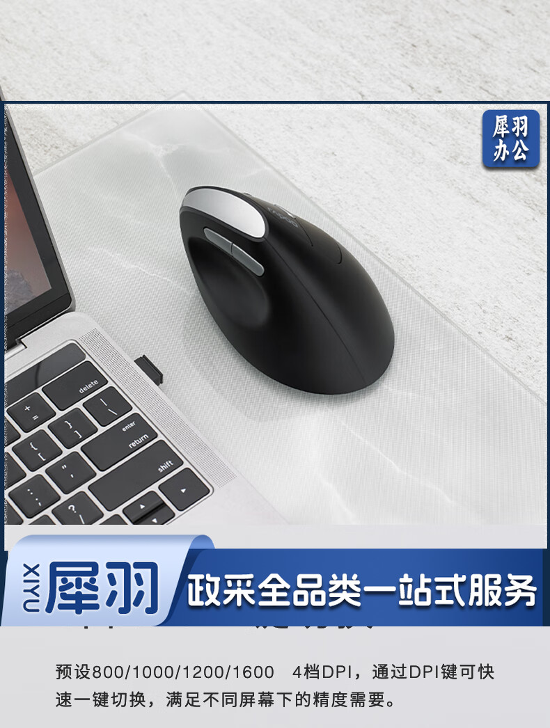 雷柏(Rapoo) MV20轻音版 无线鼠标 垂直鼠标 办公鼠标 轻音鼠标 人体工学 笔记本鼠标 电脑鼠标 黑色