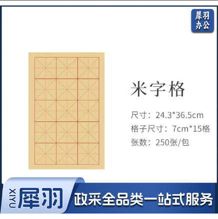书法纸 米字格纸 小学生书法专用日课纸宣纸初学者小楷练字纸半生熟米字格作品纸行书楷书毛边纸练毛笔字纸 250张/包
