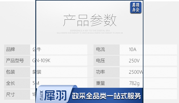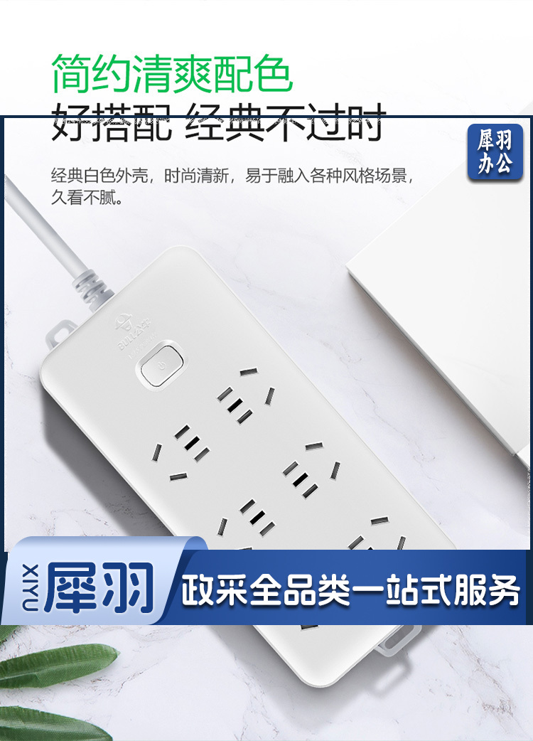 公牛(BULL) 新国标插座/插线板/插排/排插/接线板/拖线板 GN-109K 6位总控全长5米