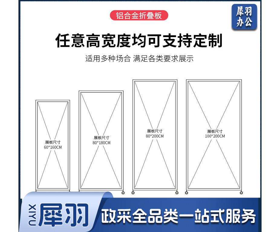 60*160cm折叠层板书画展板带轮可移动展架折叠平屏风铝合金展示架