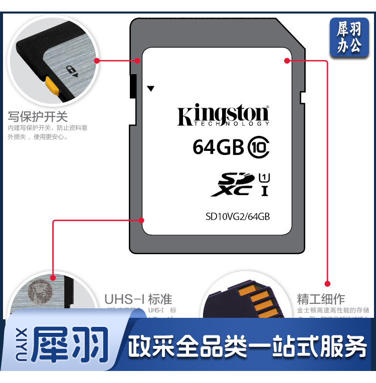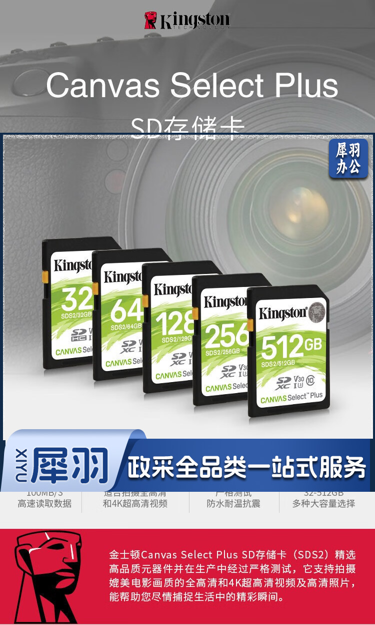 金士顿(Kingston)内存卡 SD卡闪存卡 大卡 存储卡 class10高速 32G 大卡