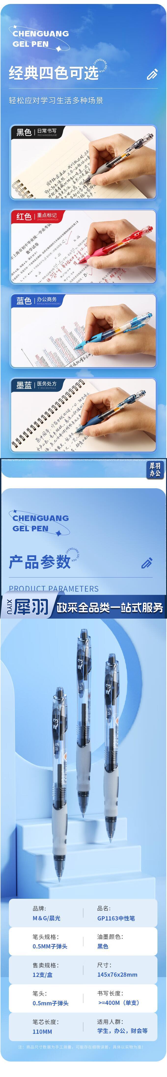 晨光(M&G)0.5mm黑色中性笔 经典按动签字笔子弹头笔 商用水笔 12支/盒GP1163