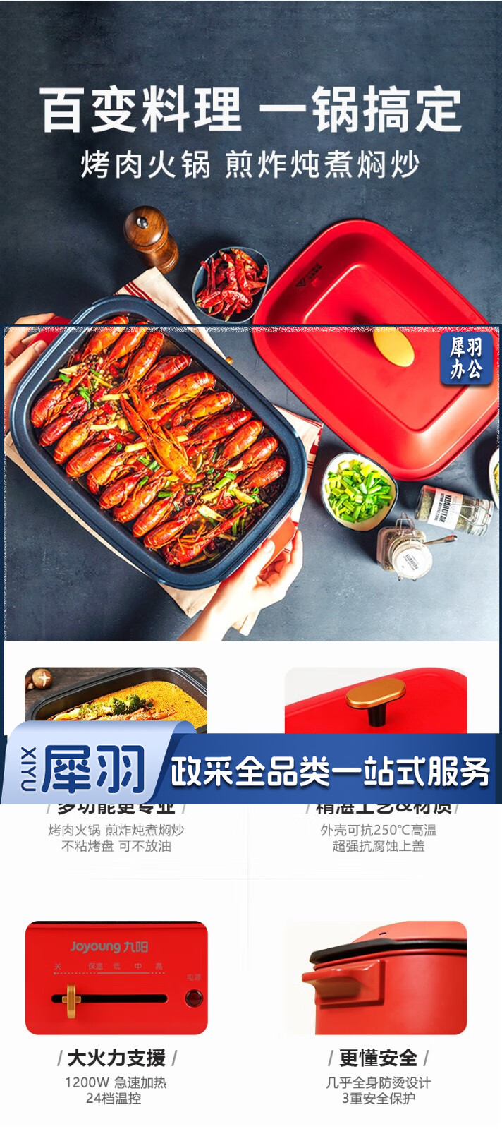 九阳 电火锅 多功能料理锅电烧烤肉盘火锅一体家用电煮锅炒锅网红锅 HG40-G721