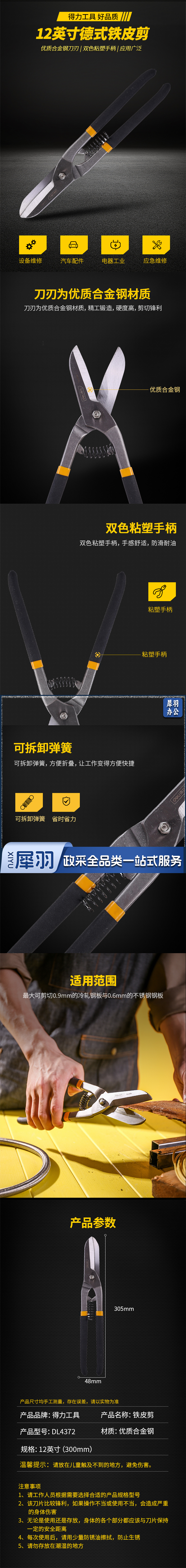 得力工具DL4372德式铁皮剪12"(单位:把)