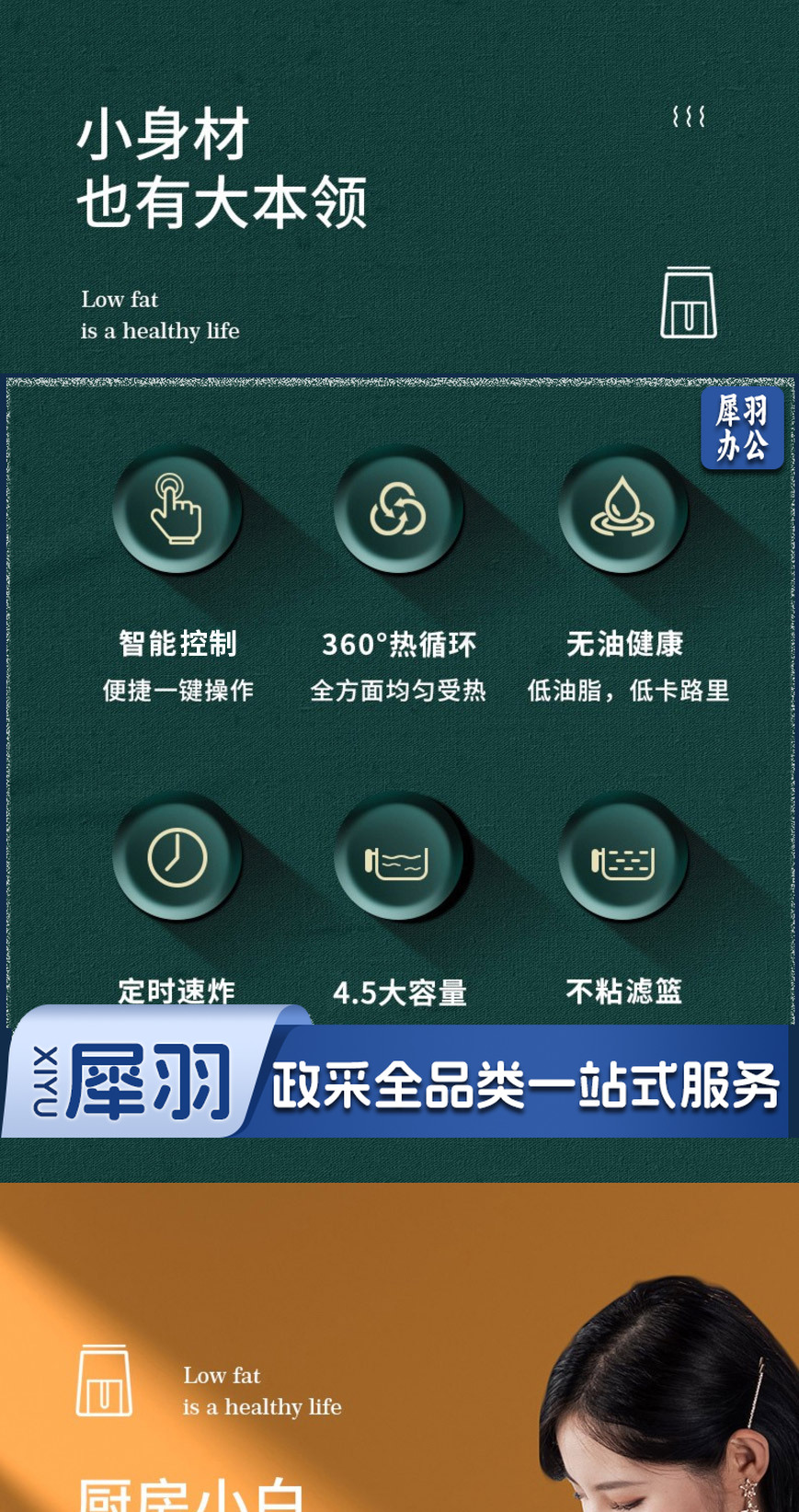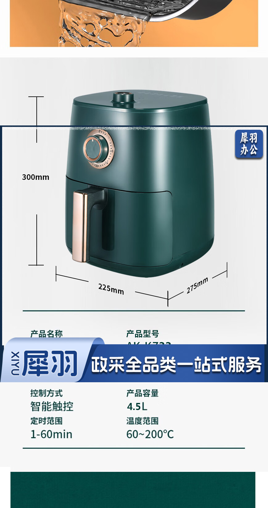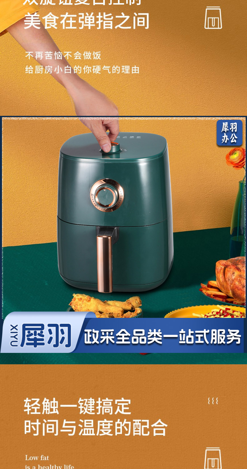 澳柯玛(AUCMA)家用宿舍办公室旋钮式定时 4.5L大容量多用途易清洗多功能空气炸锅AK-KZ33