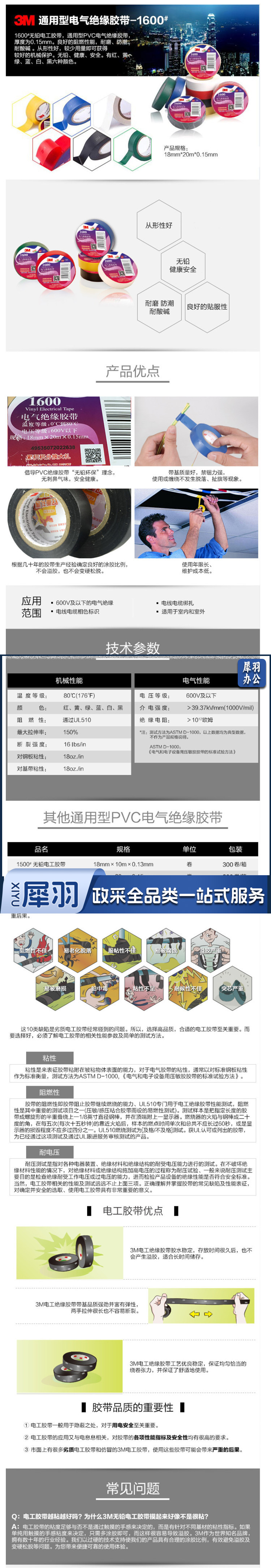 3M 1600防水阻燃胶带电工绝缘胶布绿无铅PVC胶带防潮(卷)10卷起订