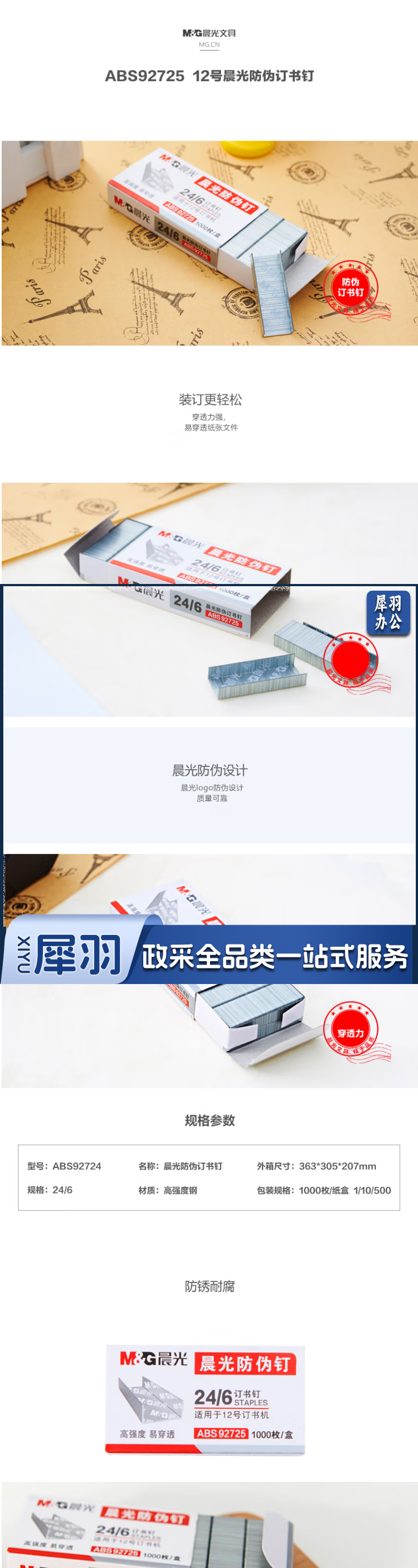 晨光(M&G)12号防伪订书钉 ABS92725 10盒装(单位:组)