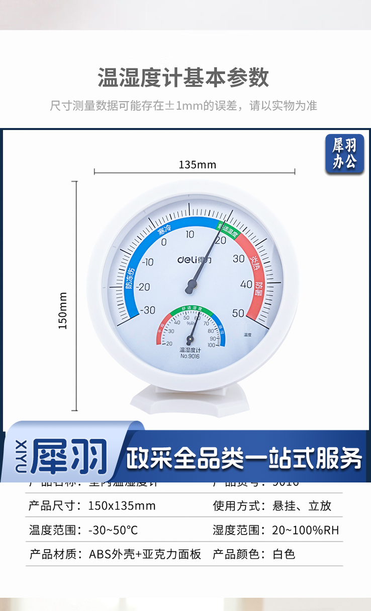 得力9016室内温湿度计(白)(吊卡+旧泡壳)(只)