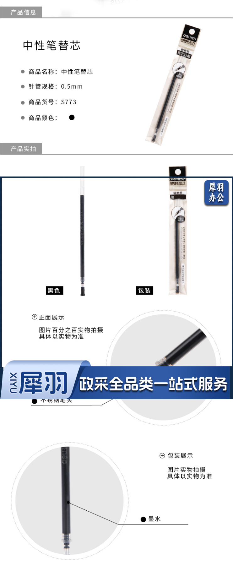 得力S773考试中性笔替芯0.5mm葫芦头(黑)