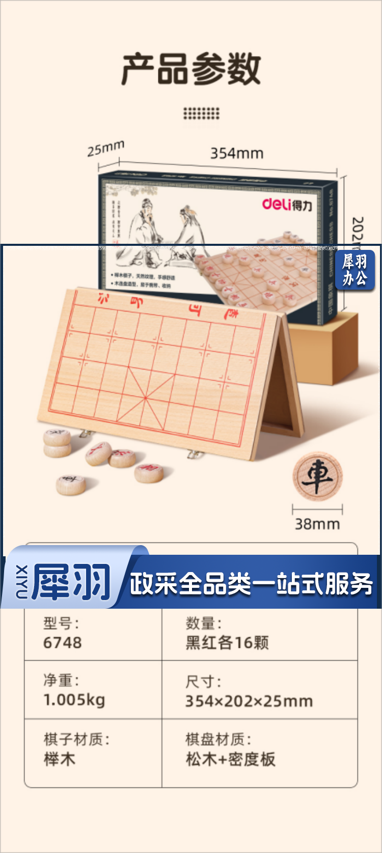 得力6748_40木连盘榉木中国象棋(原木色)(盒)