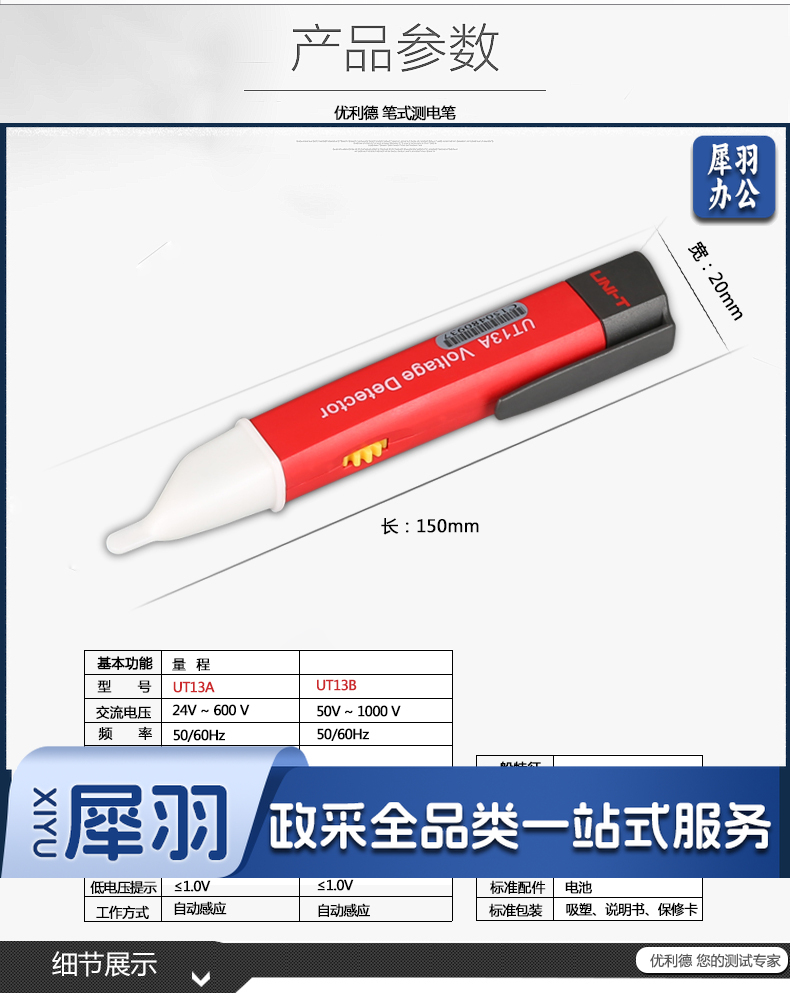 优利德多功能数显感应测电笔试电笔UT13A