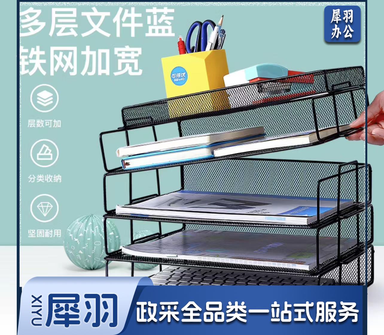 横式自由叠加层数文件架桌面铁网金属烤漆文件栏文件筐文件框文件盘资料架文件框 4层文件架【含托盘】