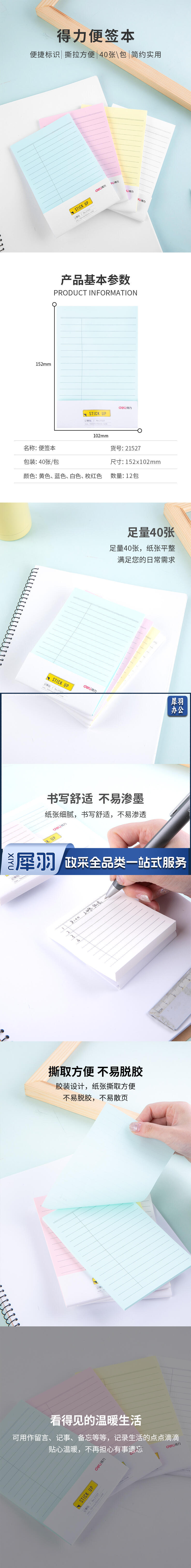 得力21527彩色记事贴带线便利贴152*102mm(混)-40张(单位:包)